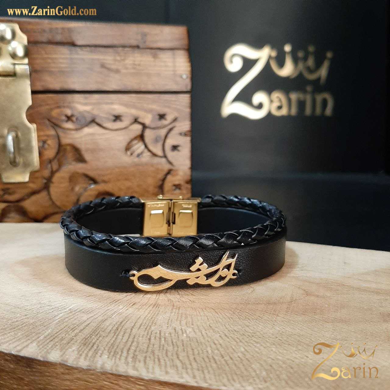 دستبند چرم و طلا با اسم ابریشم 😍🌷